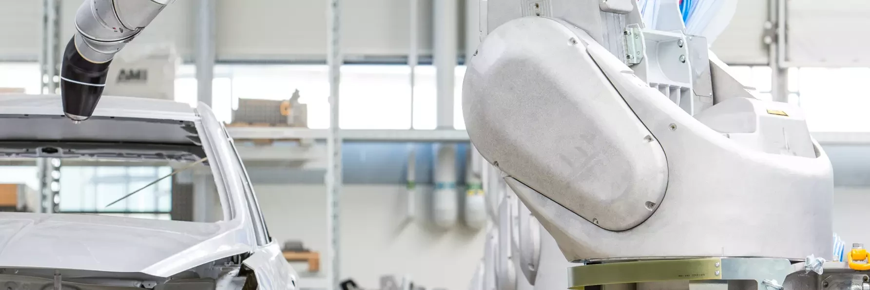 Dürr’s automatic painting line starts after pretreatment of the car bodies. In a cleaning cabin the body is prepared thoroughly. This process ensures, that the vehicle enters the line without any impurities. After this initial step, the inner car body is painted manually, according to the customer’s requirements. For this process, Dürr’s EcoGun spray guns come to use. Subsequently, the exterior is painted automatically by four Dürr painting robots EcoRP. This painting process, in which different coatings can be applied, is followed by a flash-off period during which the solvents can evaporate from the surface. The following clear coat application is for protecting the paint and brightening the color. Again, the interior is painted manually, and the exterior is painted by two Dürr EcoRP robots.