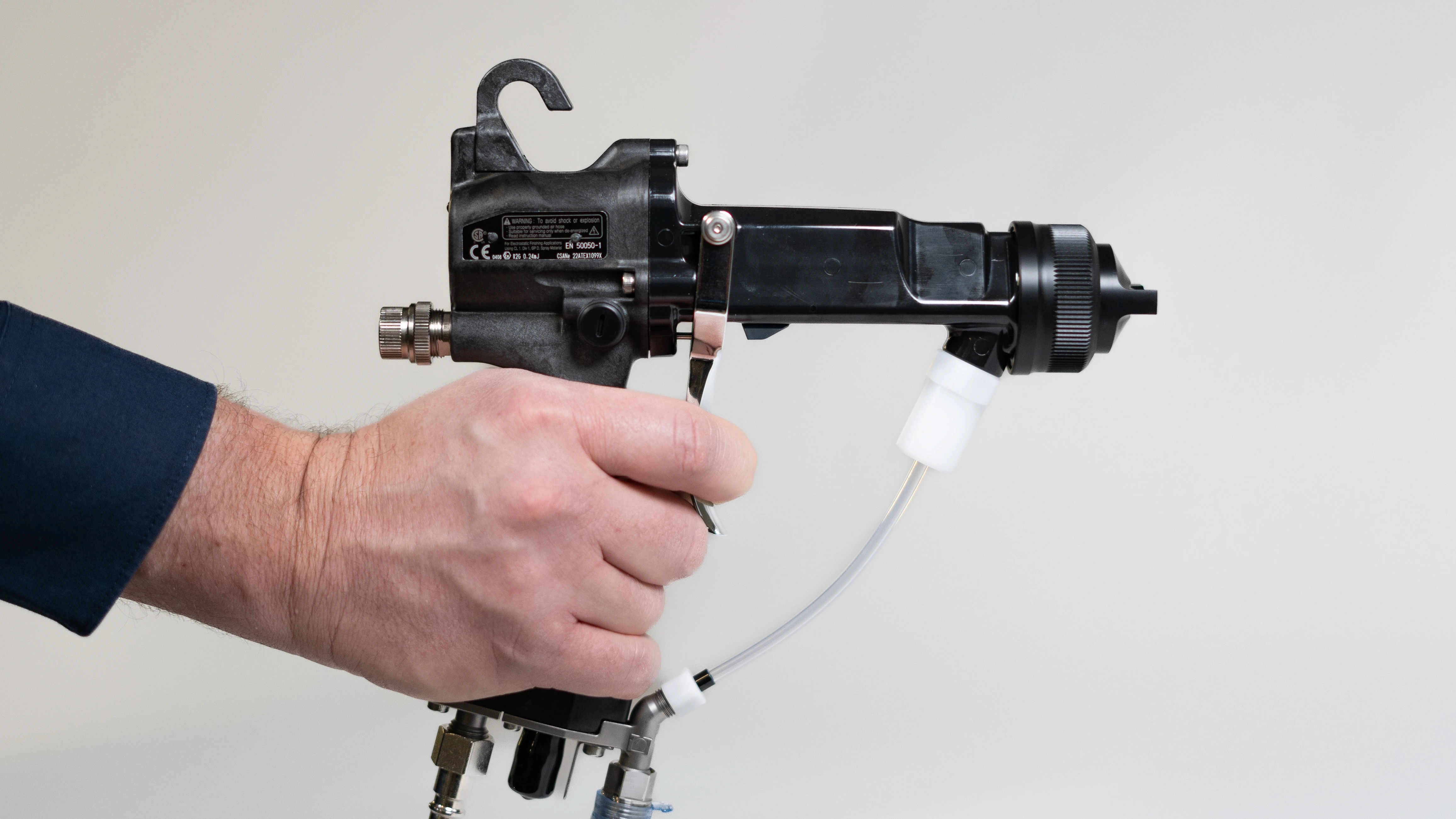 The EcoGun AS MAN DC/EC’s optimized design offers additional comfort and functionality. The handle shape was adapted to the natural shape of the palm for easier and more ergonomic handling and to prevent slipping. The housing is made from composite materials to guarantee low weight and long service life. Additionally, maintenance is simple since the gun consists of just a few individual parts.