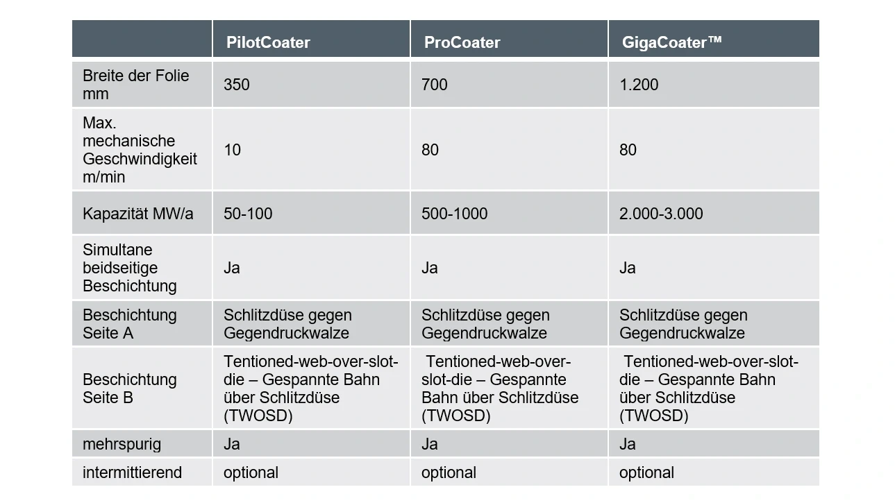 Erweiterung der Produktfamilie für beidseitige Elektrodenbeschichtungen