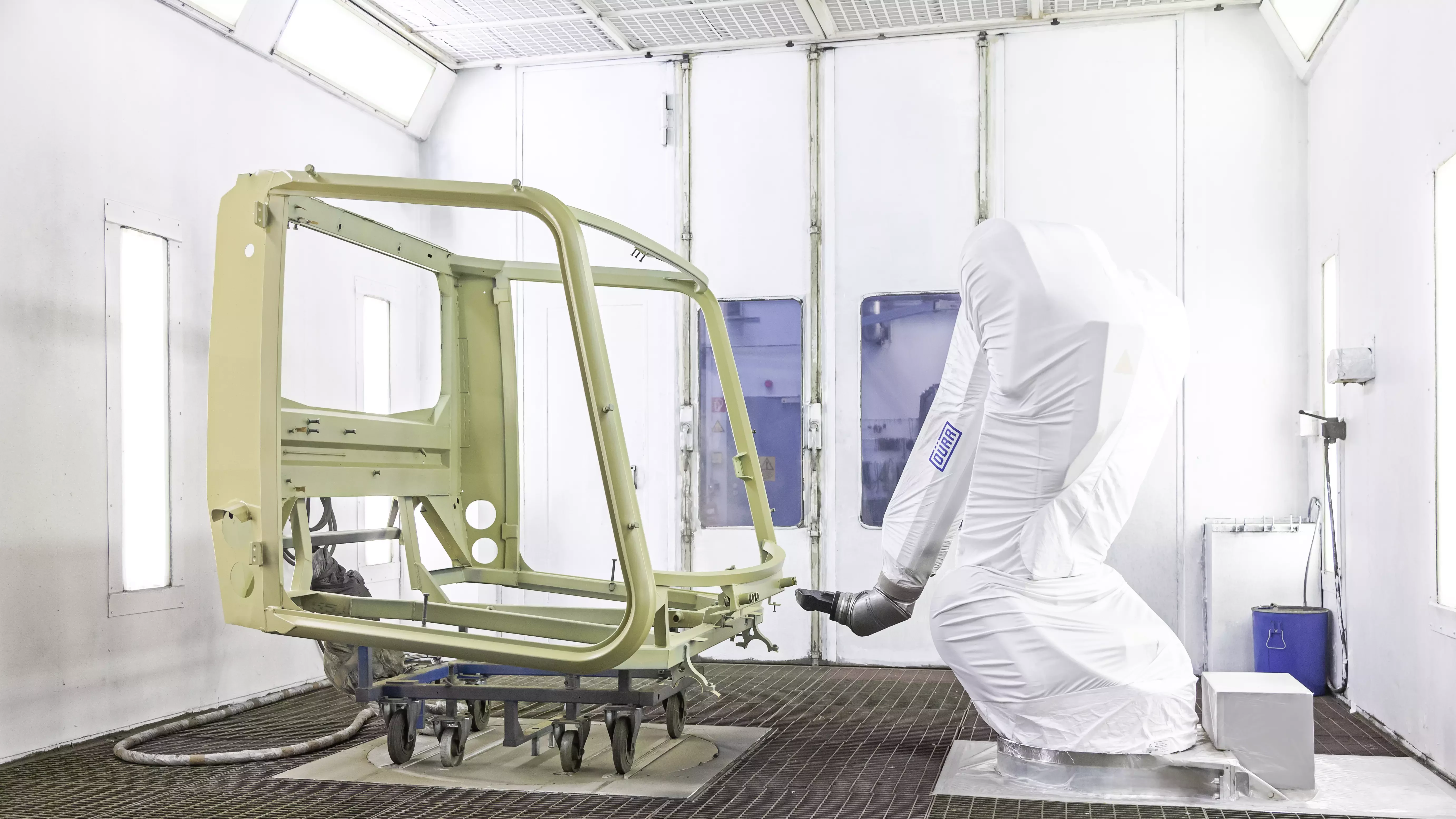 • Der Dürr-Roboter EcoRP L033 sorgt für einen automatisierten Lackierprozess bei der Kässbohrer Geländefahrzeug AG.
