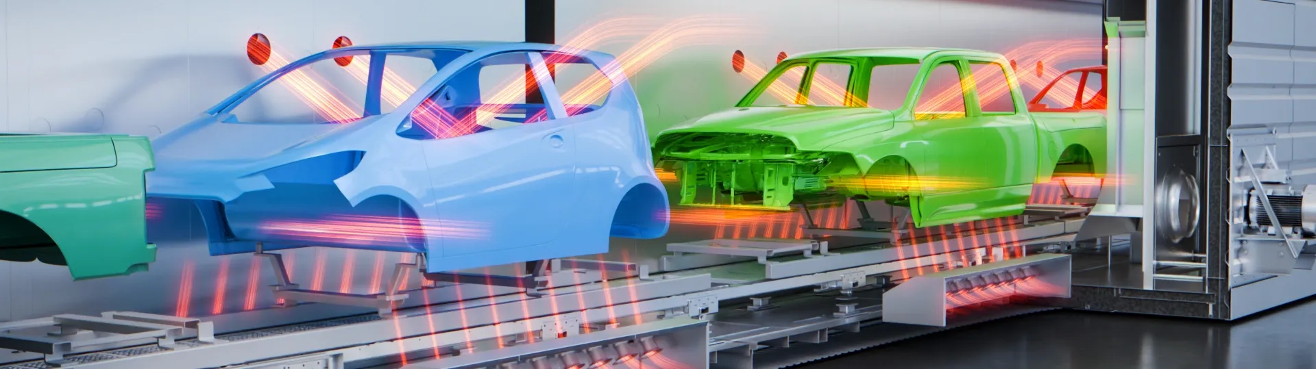 EcoSmartCure bietet viele Möglichkeiten für die Layoutgestaltung von Automobillackieranlagen. Die CFD-optimierte Luftführung sorgt für eine gezielte Luftbereitstellung genau dort, wo sie zur Aufheizung der Karosserie benötigt wird. Das Düsenkonzept des EcoSmartCure ist damit in der Lage, auch komplexe Karosseriestrukturen z. B. von Elektrofahrzeugen schnell und gleichmäßig auf die benötigte Temperatur aufzuheizen.