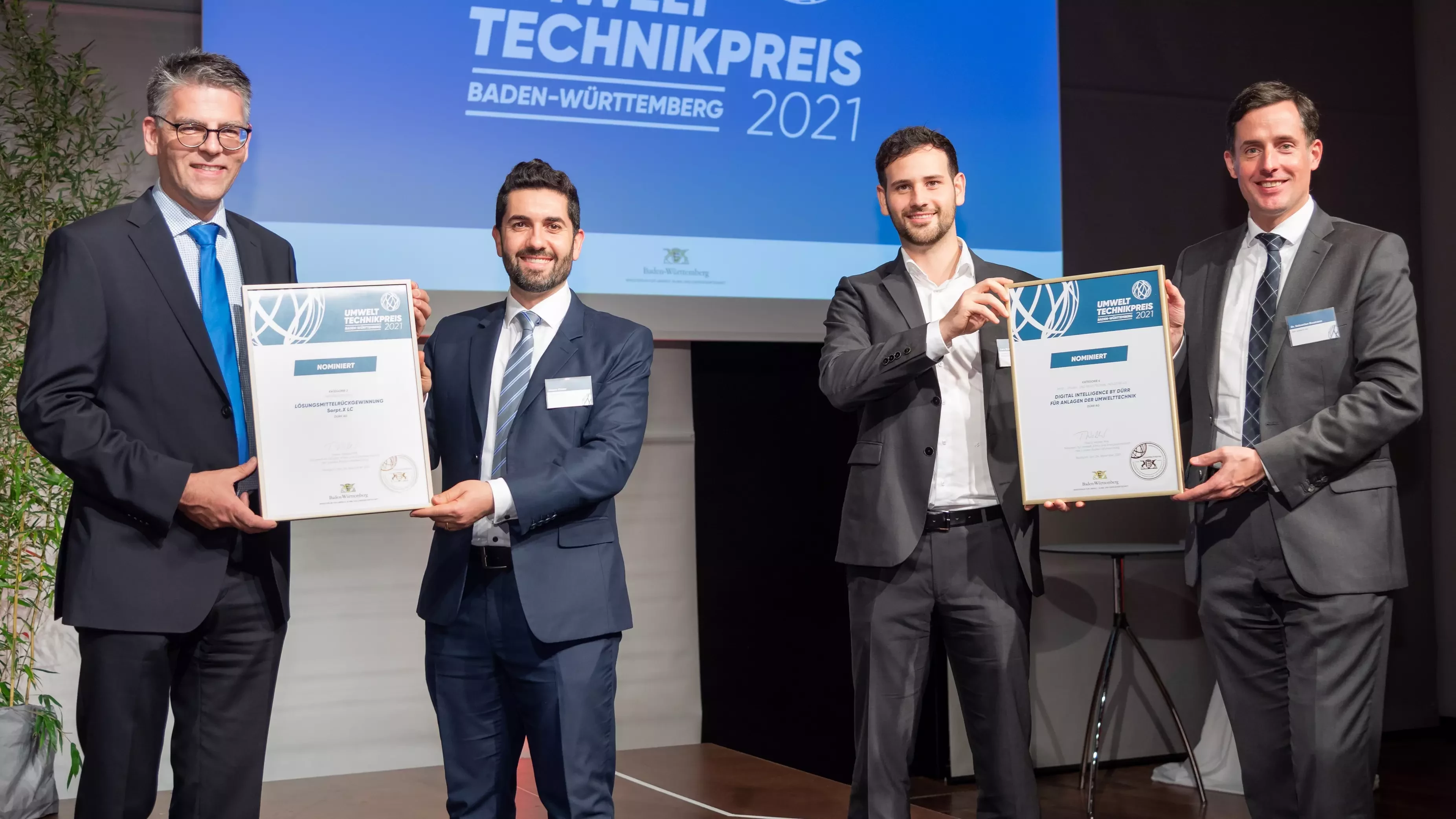 With the Environmental Technology Award, the Ministry of the Environment, Climate Protection and the Energy Sector Baden-Württemberg recognizes outstanding innovations for environmental systems in a total of four categories. Dürr impressed with Sorpt.X LC in the Material Efficiency category and DXQ for air pollution control systems in the category Measurement and Control Technology, Industry 4.0.