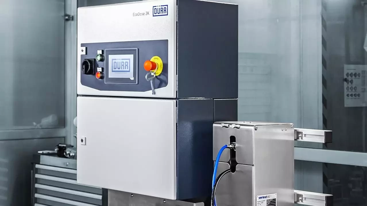 The Dürr EcoDose 2K unit is an electronic dosing system, suitable for high and low pressure applications. It can be used in manual and automatic processes. Optimized for quick color changes and easy flushing, it enhances resource utilization and contributes to higher application efficiency. Fluid flow rates and mix ratios are measured consistently and precisely. Typical fluids handled are one- and two-component materials, water and solvent-based paints, varnishes, lacquers and monolayer paints. The EcoDose 2K has many benefits such as flow rate measuring by coriolis or gear flowmeter, volume control, very high mixing ratio accuracy and monitoring of all dosing functions.