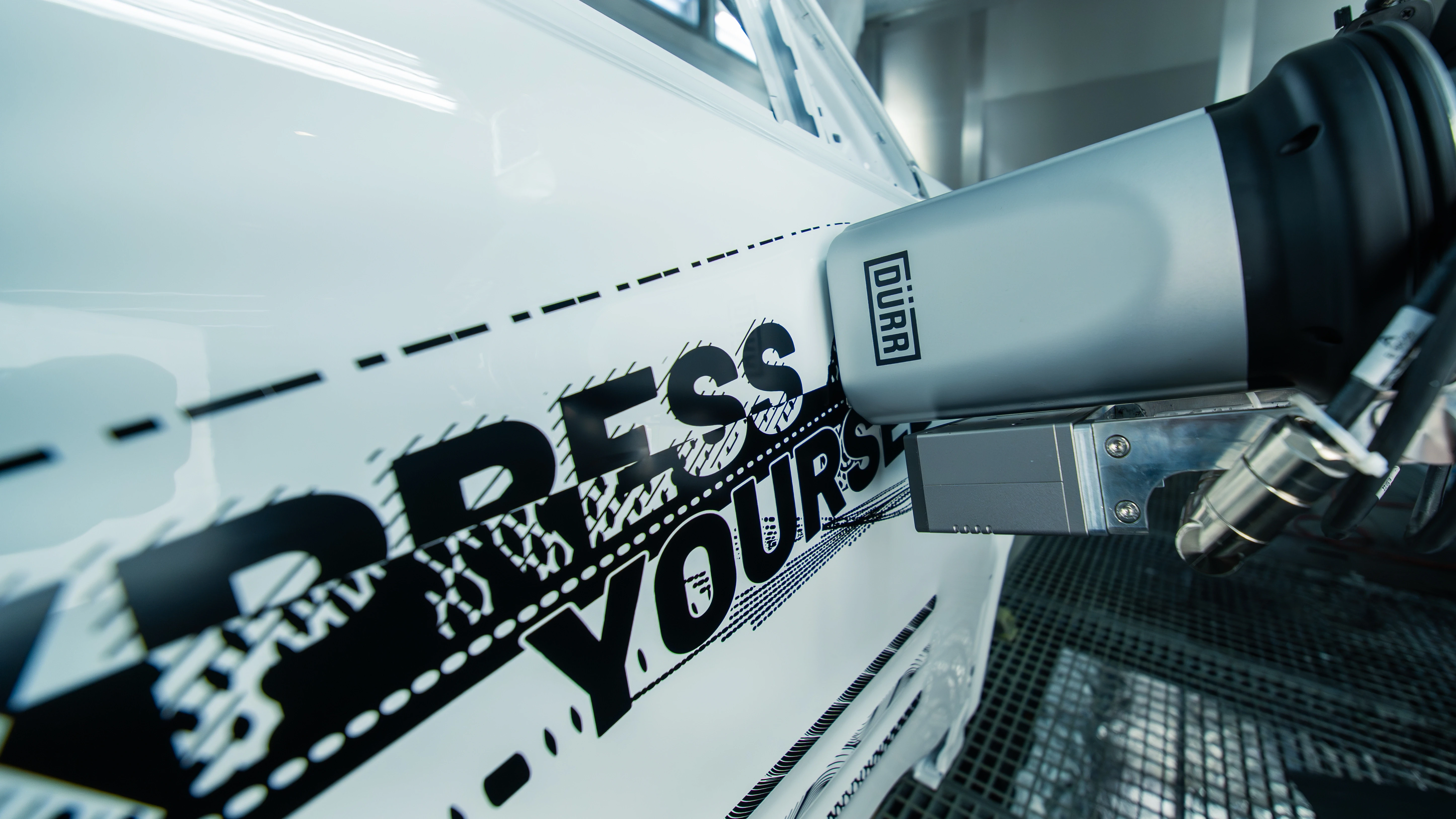 In addition to the EcoPaintJet Pro for overspray-free two-tone application without masking, Dürr is introducing the EcoNextJet. It allows for the application of high-resolution custom graphics via digital printing directly onto the body.