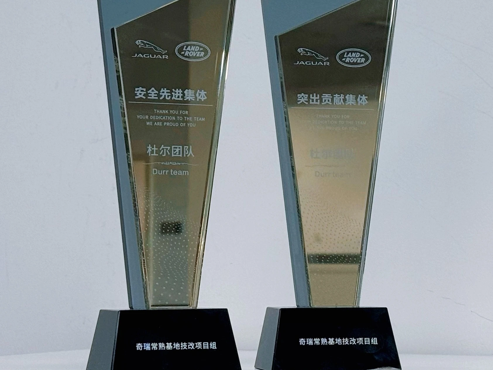 En octubre, Chery celebró una ceremonia en la planta de pintura de Changshu para conmemorar la finalización del primer automóvil como parte de su proyecto de modificación técnica. Dürr China fue galardonado por Chery Jaguar Land Rover con dos premios a equipos: el Safety Team Award (premio al equipo de seguridad) y el Project Team Award (premio al equipo del proyecto), en reconocimiento a su excelente rendimiento durante la ejecución del proyecto.