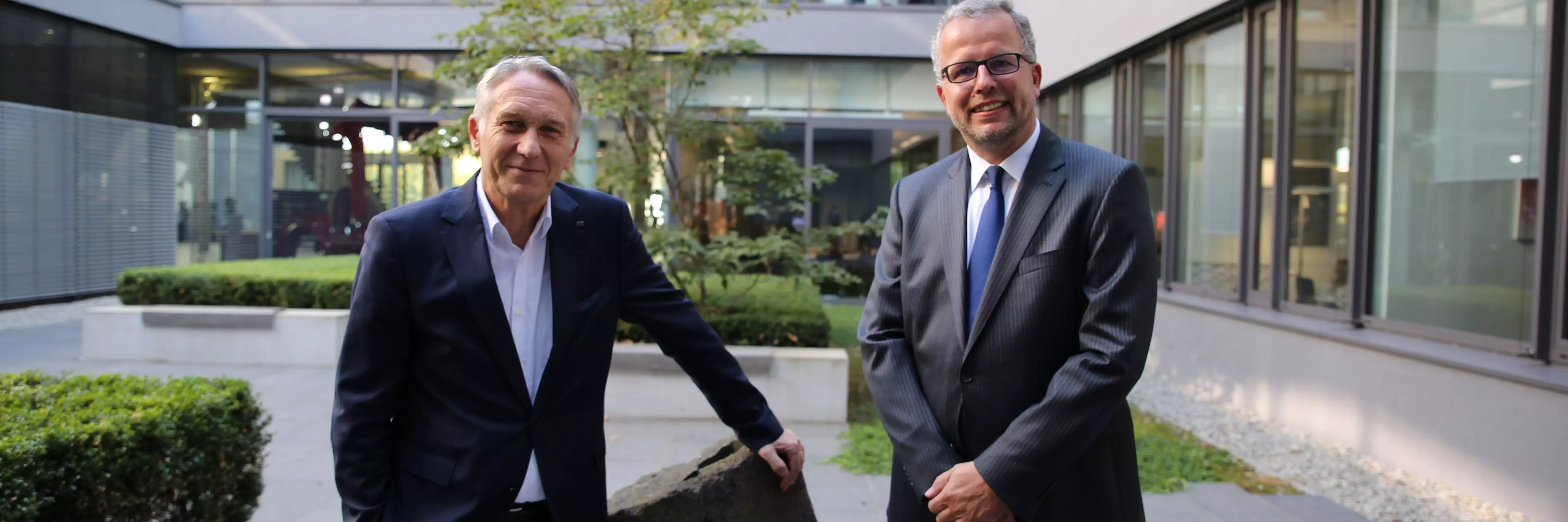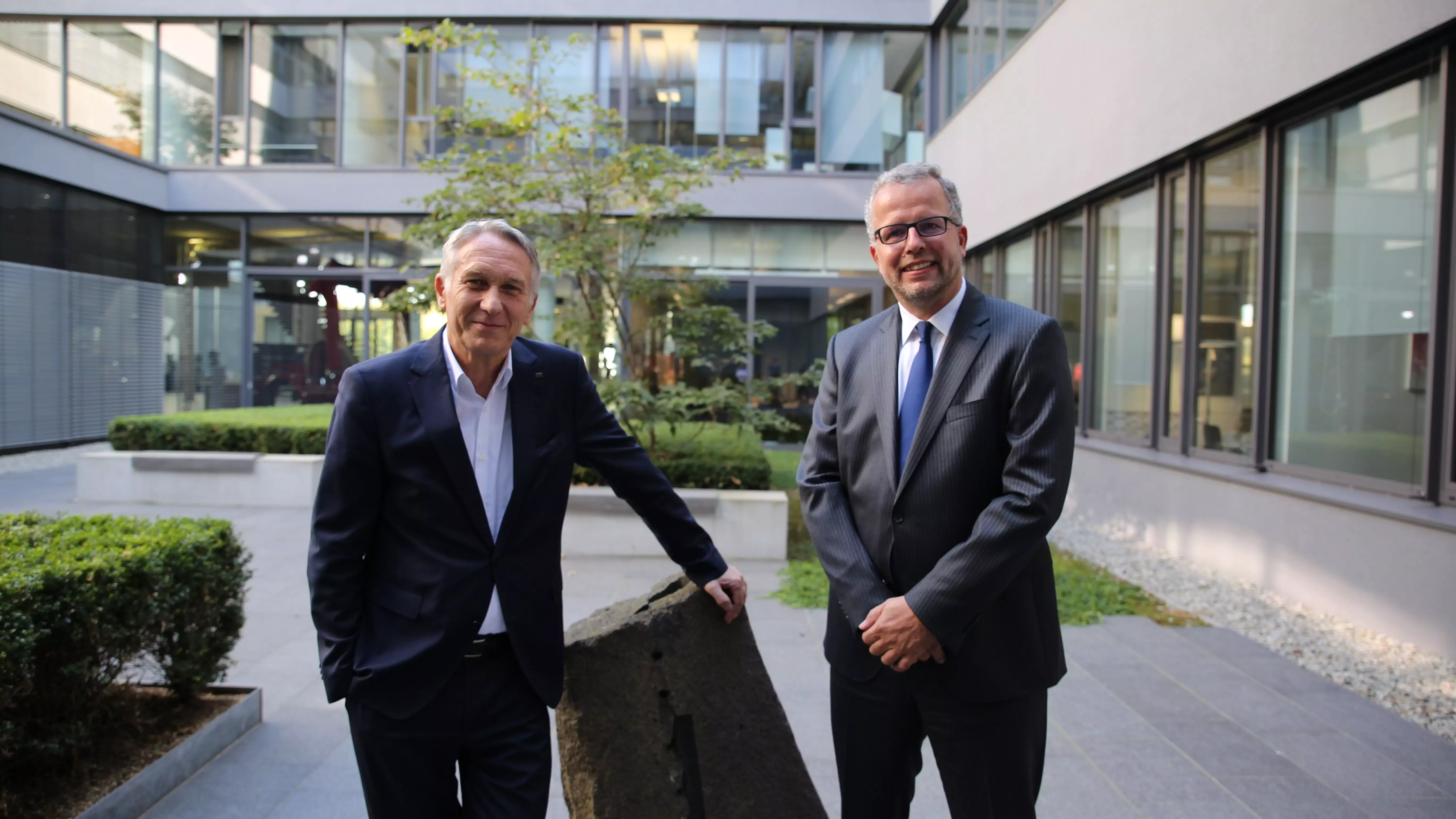 • Change of leadership in Dürr’s Application Technology division: Dr. Hans Schumacher (left) hands over the reins to Dr. Lars Friedrich.