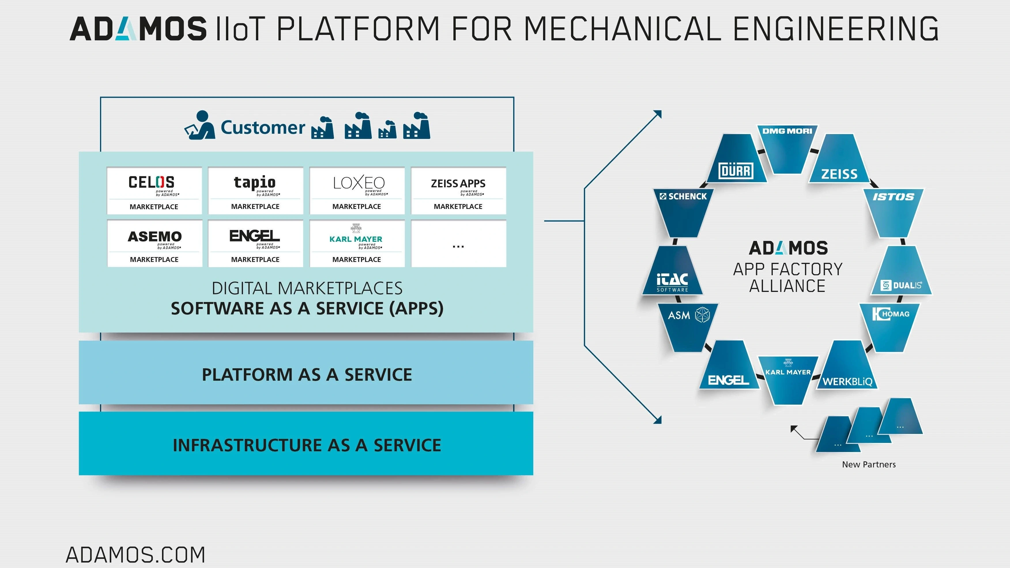 All seven companies are contributing extensive industry knowledge and innovative IT expertise to ADAMOS. The IIoT platform is comparable to the operating system of a computer and collects large volumes of production data. Digital marketplaces providing the interface with the machinery operators are developed using ADAMOS as a basis.
