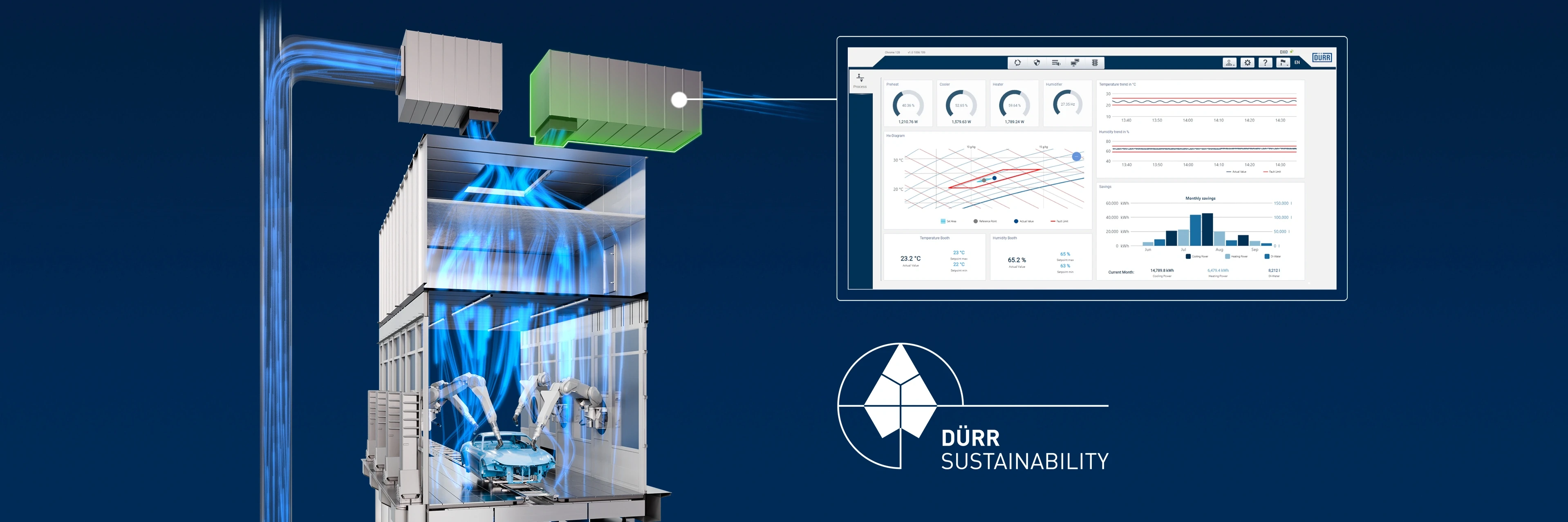 Les systèmes d'alimentation en air sont primordiaux dans les cabines de peinture automobile, car ils garantissent une température et une humidité correctes pour un revêtement de surface de grande qualité. En outre, ces systèmes créent des conditions de travail synonymes de confort et un environnement idéal pour le stockage des peintures. Cependant, le conditionnement de l'air consomme beaucoup d'énergie, car il faut traiter en continu le flux d'arrivée de l'air extérieur. « Jusqu'à maintenant, le conditionnement de l'air représentait près d'un tiers de la consommation d'énergie totale d'un atelier de peinture. Pour diminuer cette consommation, Dürr a perfectionné le logiciel DXQequipment.analytics en le dotant d'un système de contrôle intelligent qui permet pour la première fois aux opérateurs d'optimiser les coûts d'énergie et d'exploitation », déclare Jens Häcker, Vice President Digital Factory chez Dürr.