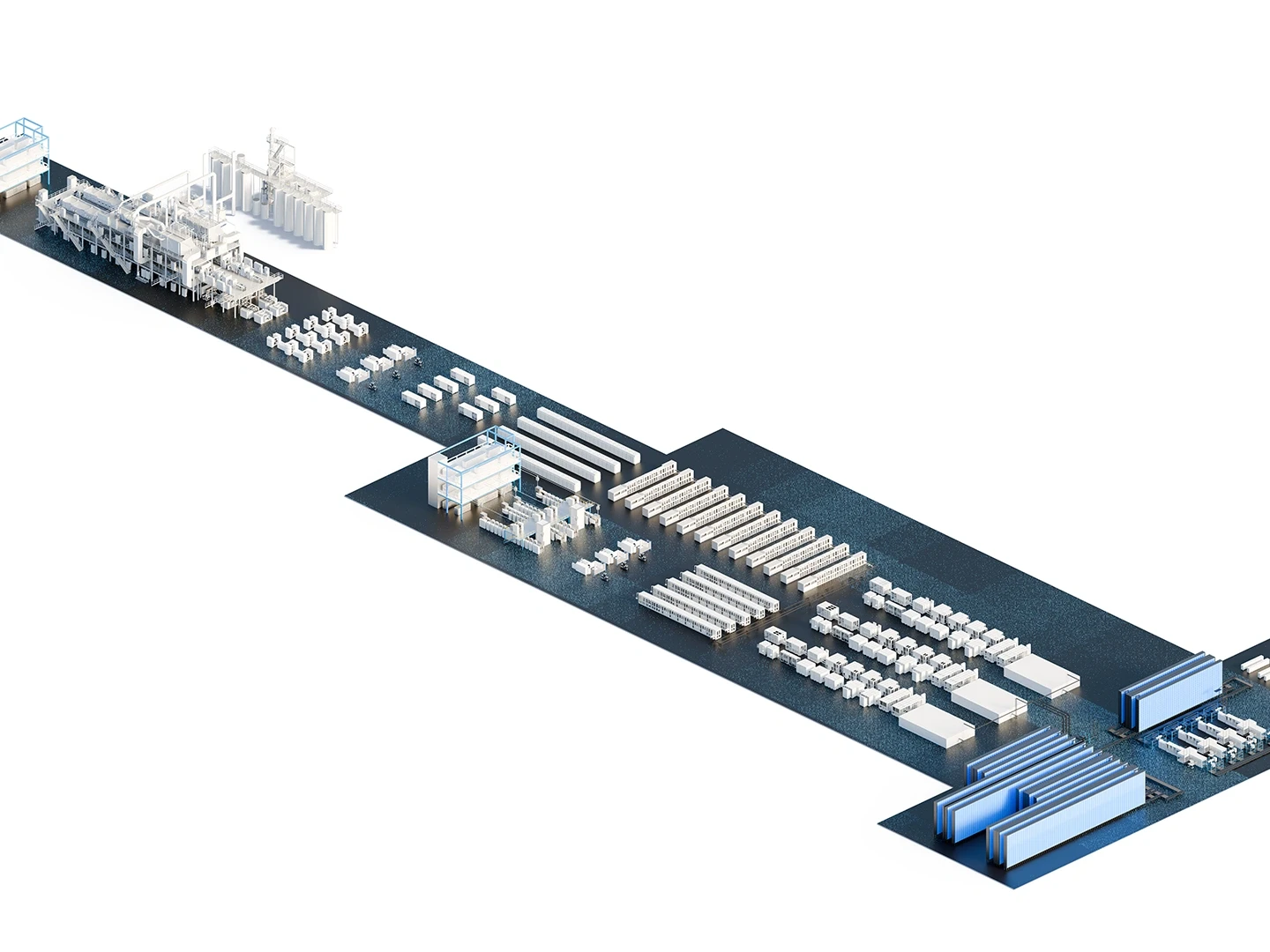 Le due aziende leader Dürr e GROB hanno combinato la loro esperienza per la produzione di batterie agli ioni di litio. Insieme coprono quasi interamente la catena del valore con le rispettive tecnologie. La fabbrica di nuova concezione rappresenta l'ultimissima generazione di produzione di batterie, con il 50% di ingombro in meno e il 70% di consumo di energia in meno, fornendo al tempo stesso prestazioni di massimo livello e qualità elevata delle celle. Siamo i vostri partner globali per la produzione locale di batterie.