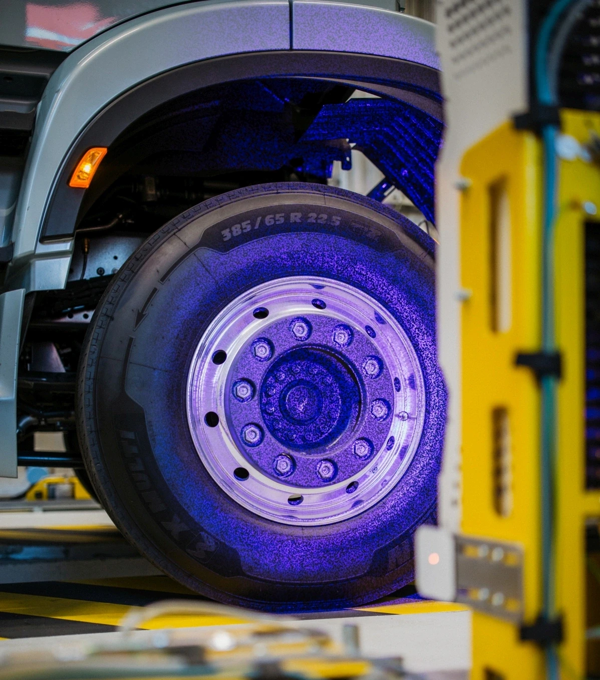 Camion e bus con un carico per asse fino a 10 tonnellate costituiscono una sfida particolare per la tecnica di controllo. Con il banco di prova del telaio x-wheel truck d, Dürr impone nuovi standard per la misurazione e la regolazione della geometria del telaio. A ciò fanno affidamento noti produttori come Volvo Trucks, Tata, DAF, Leyland, Ford, FAW, Dongfeng, Iveco, Ashok Leyland, MAN, Geely, Kenworth, Peterbilt, Renault Trucks e Daimler Trucks, poiché questo banco di prova offre loro vantaggi per quanto riguarda qualità, flessibilità e tempi di ciclo.