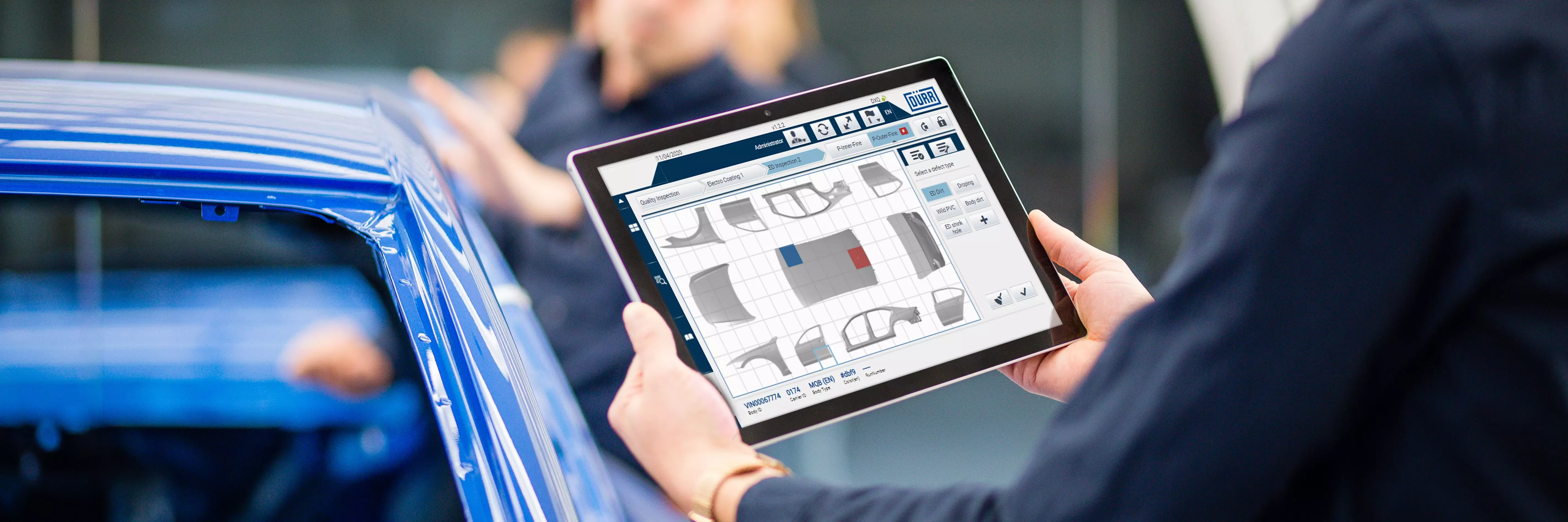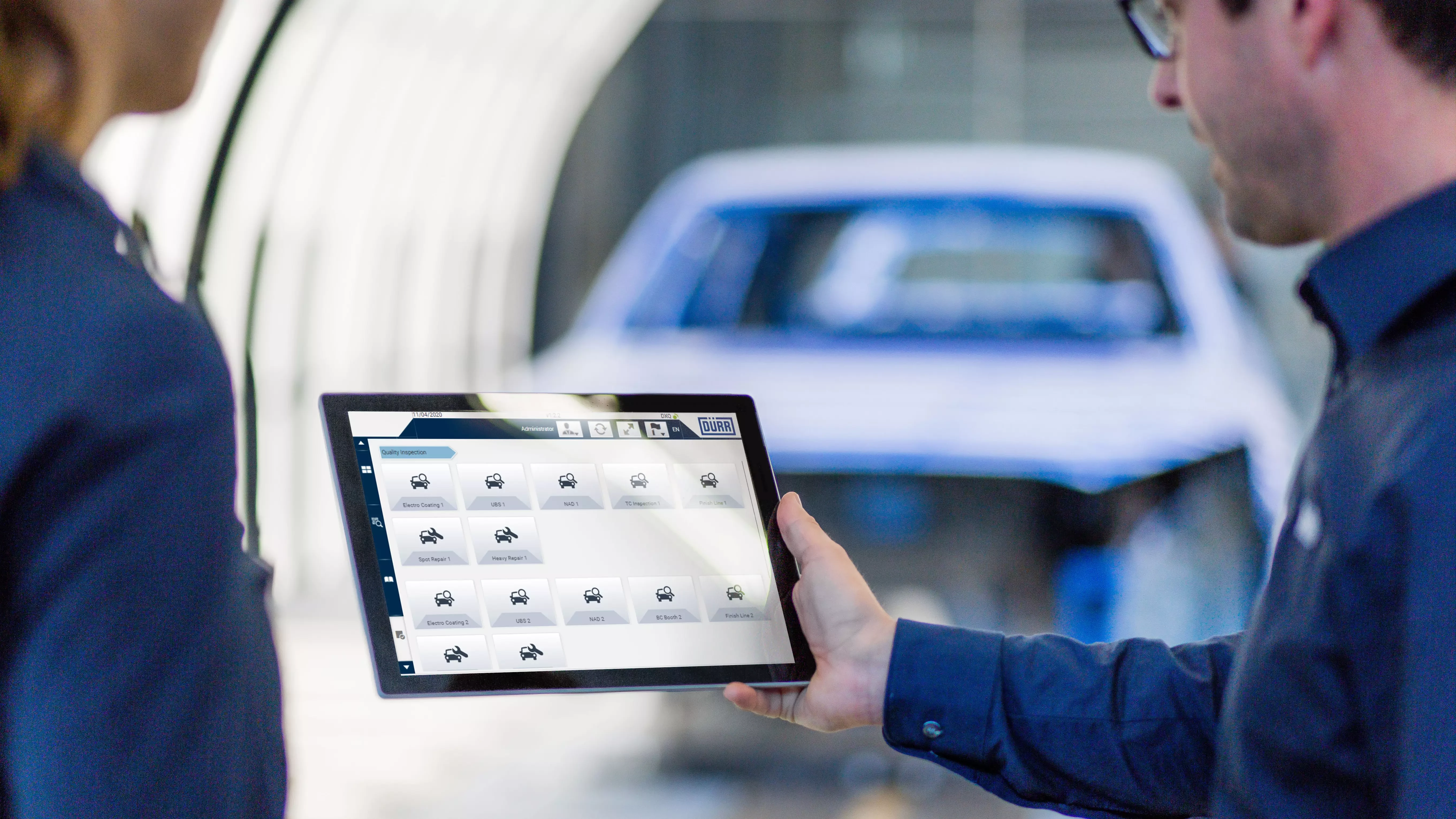 SVW uses nearly all modules from the feature-rich DXQcontrol software solution for higher-level plant control. It enables the life cycle of each body to be tracked from beginning to end. This starts with receipt of a production order, whereby the order information is translated into concrete production steps. In addition to order data management, the DXQbusiness.intelligence module from the DXQcontrol product family is also used in a new form. For the first time, consumption data such as energy, water, or air usage can be evaluated historically over long periods. This lays the foundation for sustainable plant operation. A further innovation is the use of mobile apps provided by various DXQ products. For example, employees can manage and filter alarm functions directly at the point of origin in the plant using tablets if the line comes to a stop.