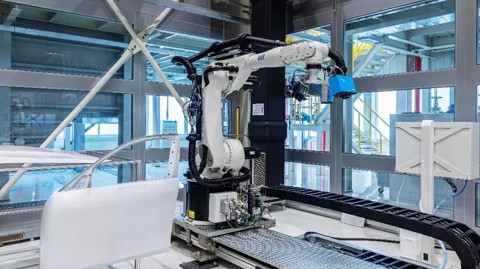 At the end of the painting process, the body surface is checked at a quality control station. In most paint shops, this is done by means of manual random sampling and data processing. For Sinotruk, Dรผrr is installing a fully automatic quality control station. Here, a robot follows defined checkpoints on the truck cabs and uses sensors to record data about color variations, surface texture, and layer thickness. This automation saves time compared to manual measurement. This data is transferred to the database and visualized digitally for the worker. This way, the worker always has an eye on the quality.