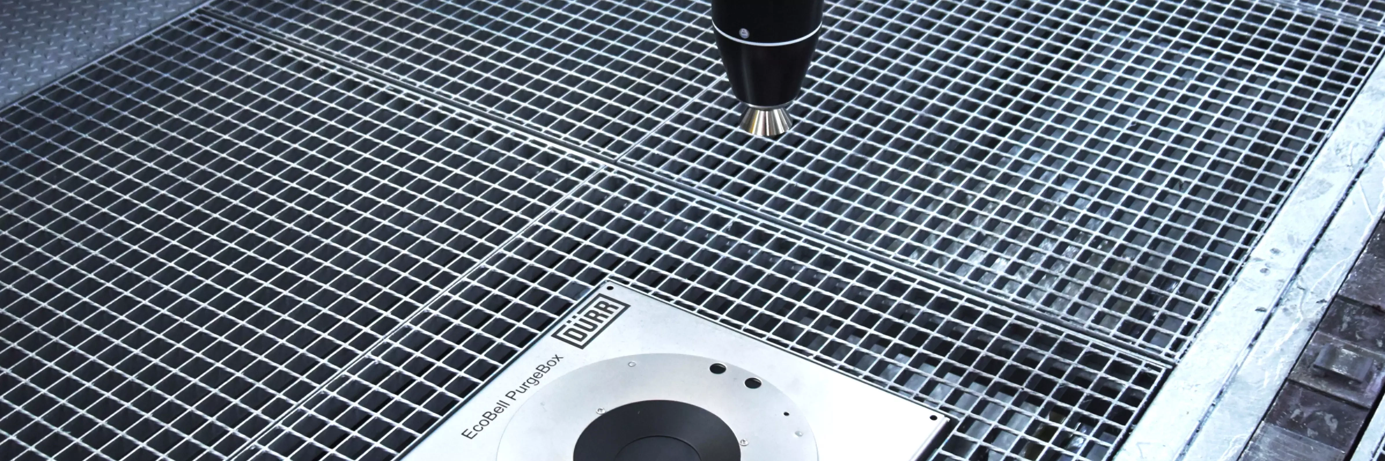 The newly developed EcoBell PurgeBox is a system that replaces the funnel solution entirely and significantly reduces the VOC load in the booth. Instead, the atomizer moves into the box. The special filter mats in the box collect the majority of the paint, the air escapes to the side, the almost pure flushing medium flows downwards and can be disposed of with ease via a manifold line that requires no additional flushing. The filters are simply discarded as residual waste after their lifetime. “In two-component zones, it will be possible to significantly reduce VOC emmissions by means of flushing and cleaning processes if an EcoBell Cleaner D2 is combined with an EcoBell PurgeBox instead of a funnel,” says Sandra Schlichenmaier.
