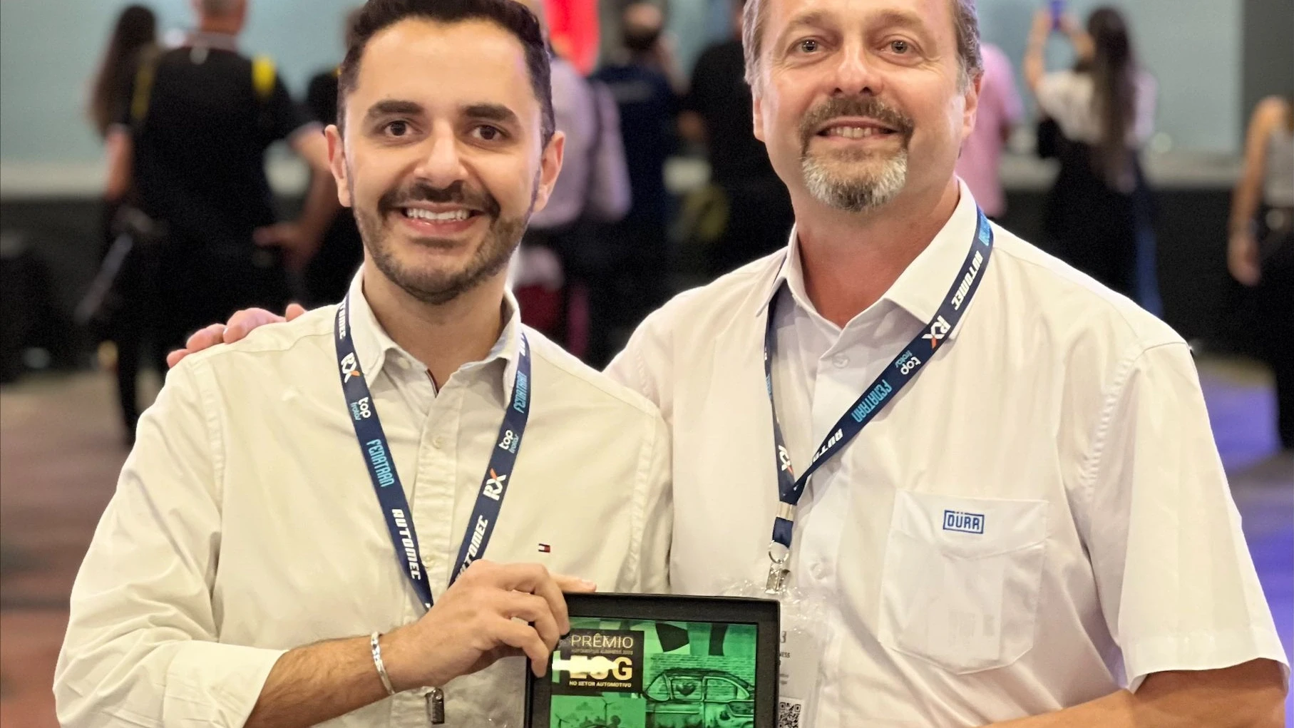 • Ronaldo Selman, Gerente Financeiro Sênior, e Robson Castro, Diretor de Sistemas de Pintura e Montagem Final, representando a Dürr Brasil, receberam com orgulho o prêmio na cerimônia.